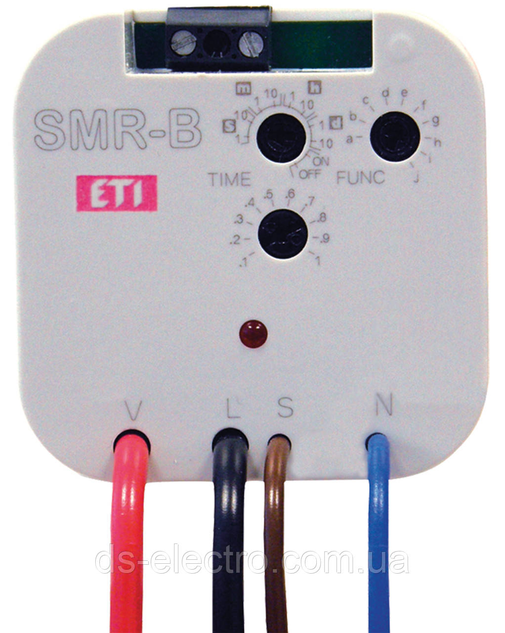 Багатофункціональний реле серії SMR застосовуються для управління споживачами невеликої потужності в схемах розподілу, сигналізації. Реле встановлюються під вимикачем в монтажній коробці. Реле SMR-B можуть використовуватися для комутації люмінесцентних та економ-ламп, вони забезпечені гальванічно ізольованим входом 5-250 В AC/DC. довжина керуючого імпульсу необмежена.