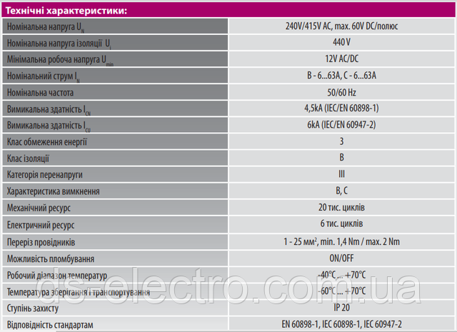 | Номінальна вимикаюча здатність (Icn) | 4500 А |
